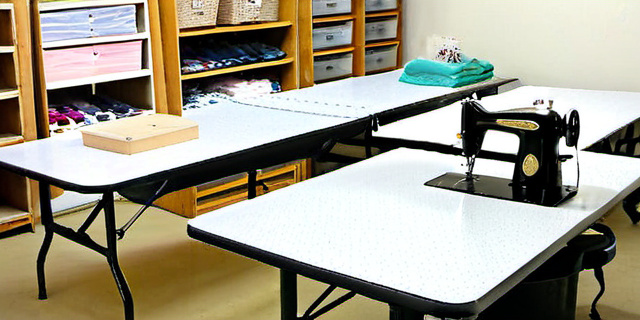 Выбор столов зависит от выполняемых задач — раскрой, пошив, работа с тонкими деталями. Хороший стол должен быть удобной высоты, достаточно большим, чтобы разместить большой кусок ткани или выкройки.