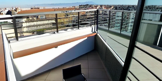 - Модульная терраса от производителя конструкции: легко собирается и демонтируется, оборудована мобильным электрогрилем. Подошла для владельцев арендуемых домов с большими окнами и прекрасными видами.