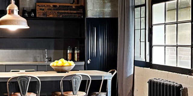Как сочетать металлическую мебель, бетон и винтажные светильники?