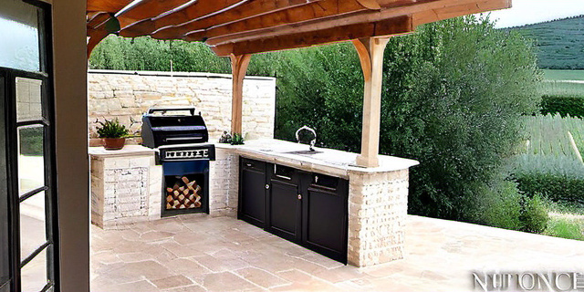 - Пример оформления летней кухни в стиле прованс с использованием природного камня