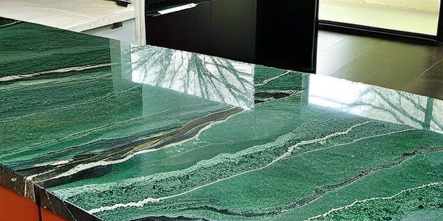 - Кухонные столешницы и фартуки – зеленый оттенок дает свежесть и природную красоту, а гладкая полированная поверхность удобна для работы и ухода.