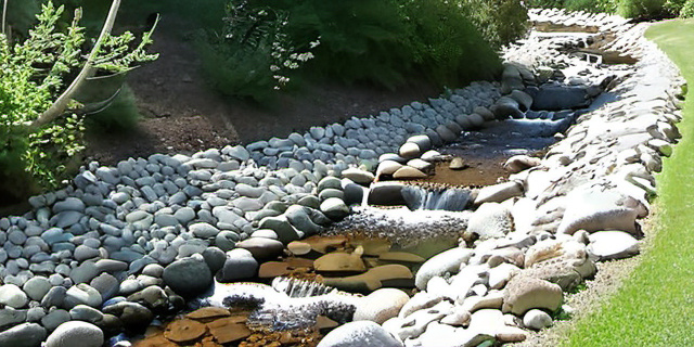 Один из ключевых моментов при создании сухого ручья — использование камней, максимально приближенных к природным материалам региона. Такой подход гарантирует не только экологичность, но и органичное вписывание конструкции в окружающий пейзаж.